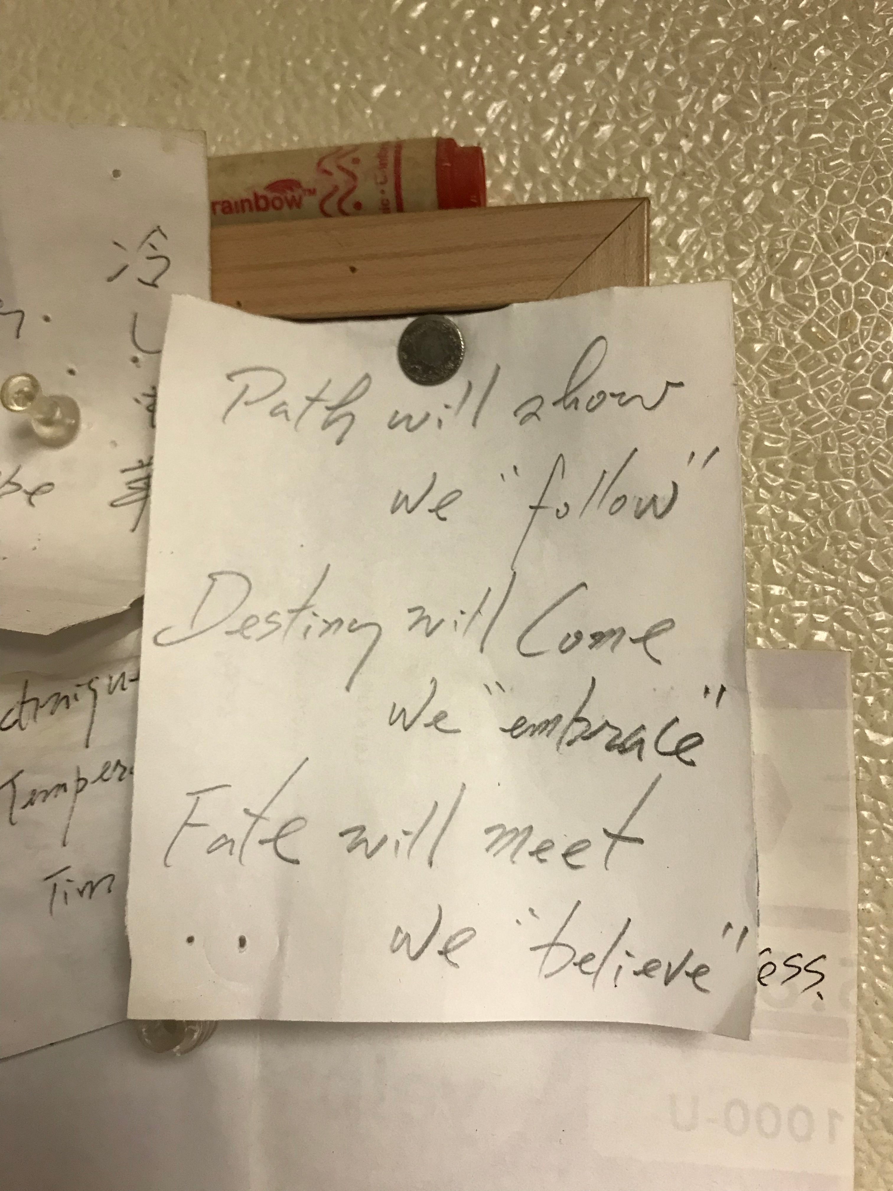 (他自己寫貼在他的的行事曆旁邊的小紙條)